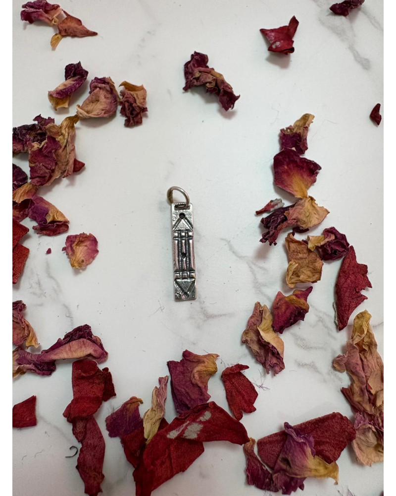 Este colgante es un amuleto de geometría sagrada, protege contra malas energías y pontencia la intuición.