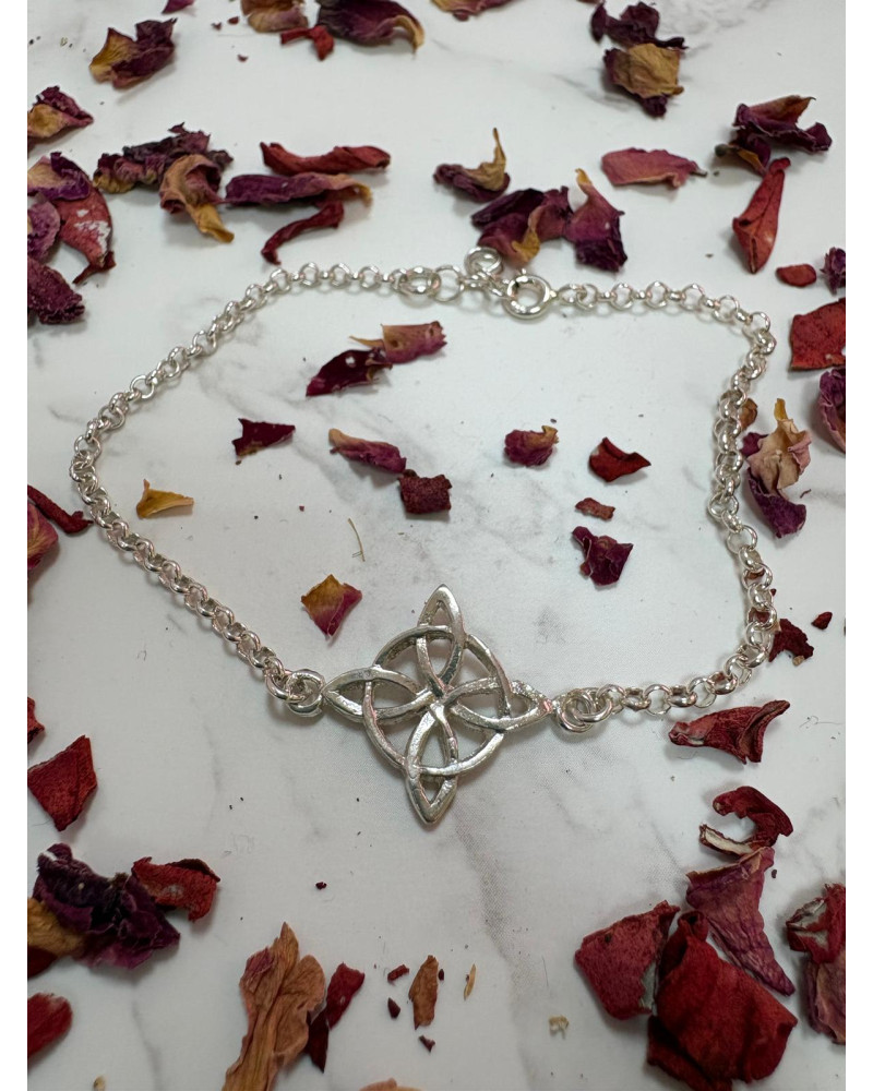 Pulsera de plata con el símbolo del Nudo de Bruja. Protector, escudo energético que bloquea las malas energías y asociado a la intuición, la sabiduría ancestral y el vínculo con la naturaleza. Conexión entre lo físico y lo espiritual.