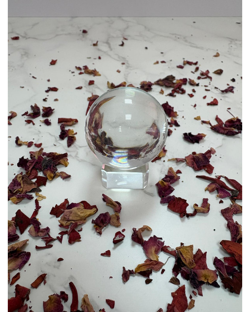 Bola de Cristal mini con soporte. Utilizada en adivinación como herramienta de clarividencia o en Feng Shui para armonizar espacios, rompiendo energías estancadas y atrayendo la buena suerte.